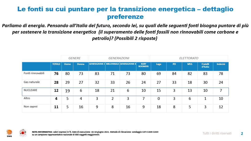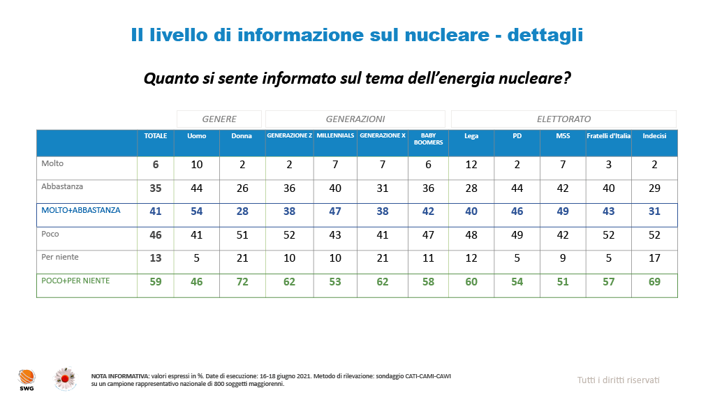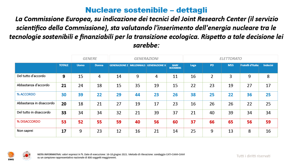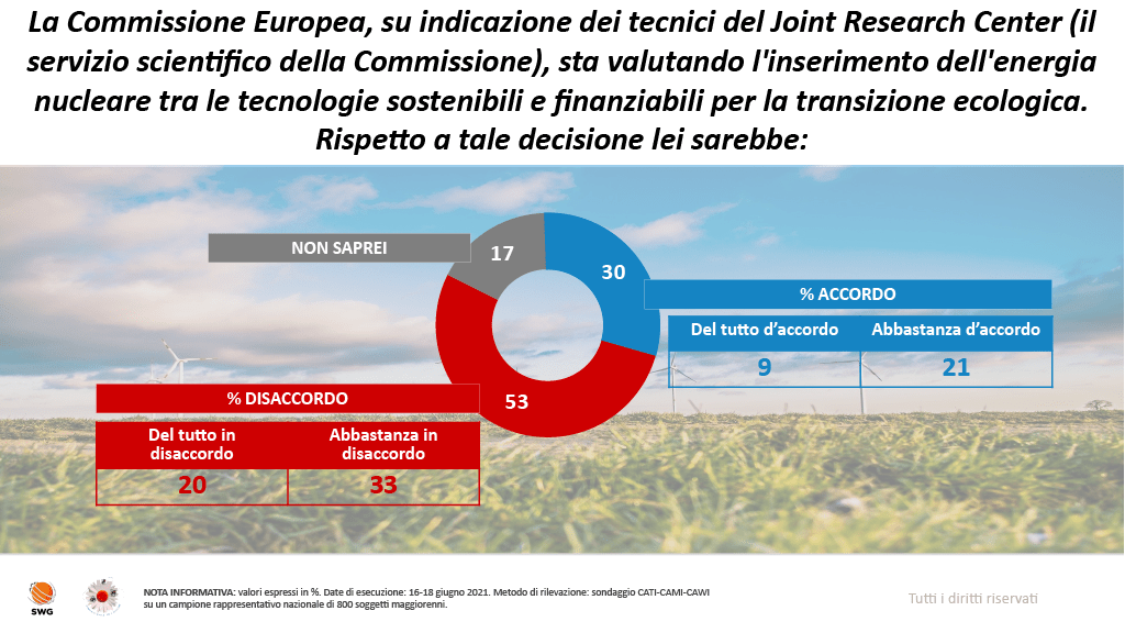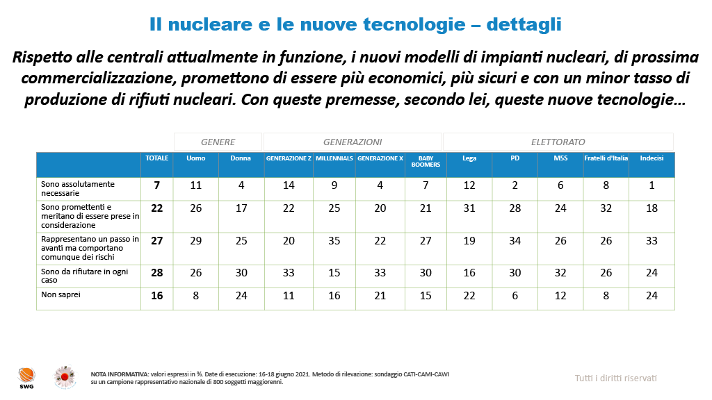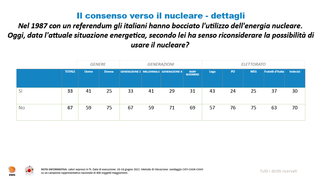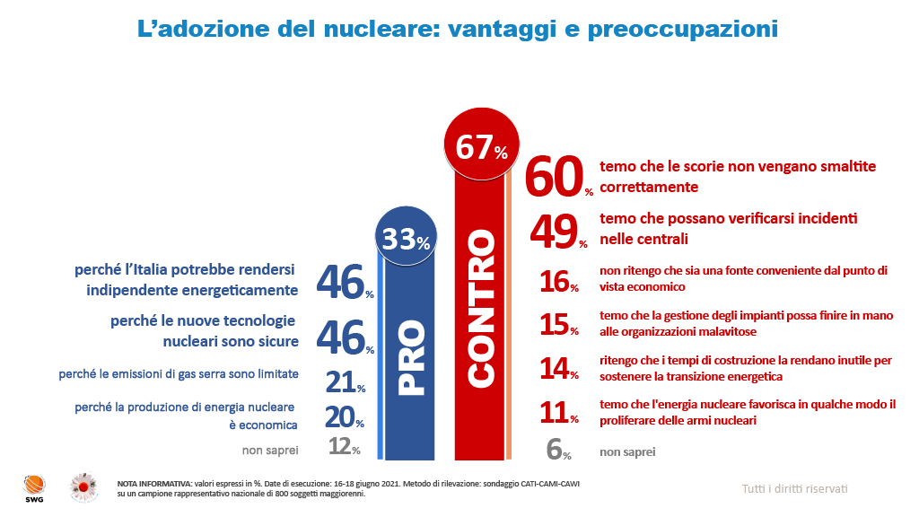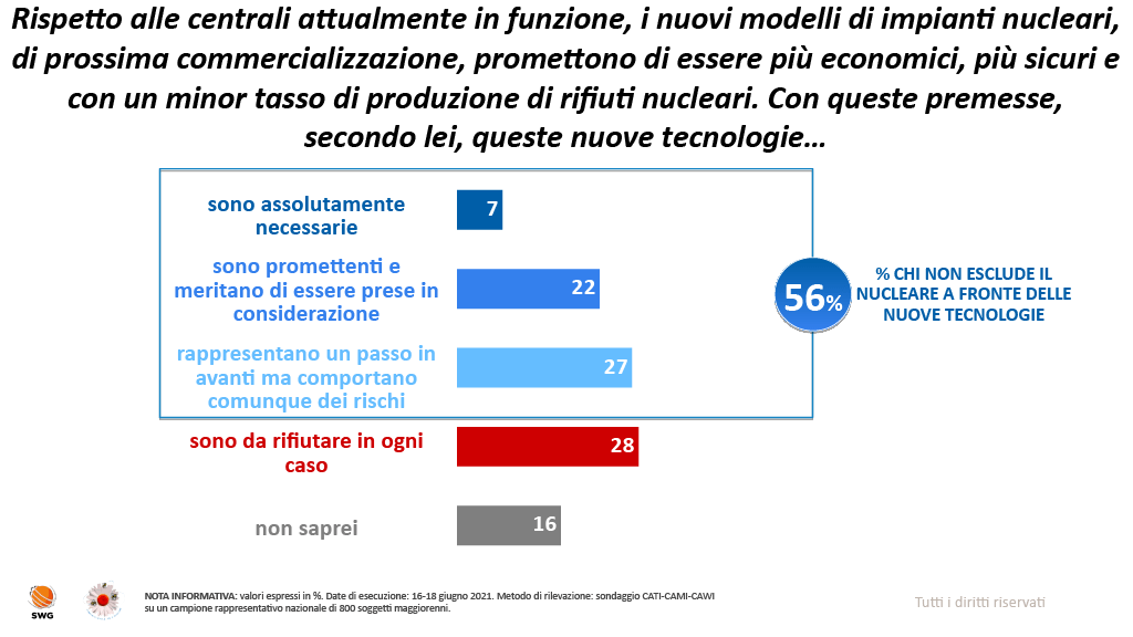4 pensieri riguardo “Sondaggio SWG: oltre un italiano su due possibilista sui nuovi reattori nucleari”